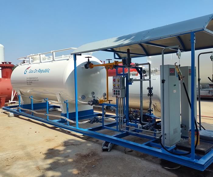 给出液口气动切断阀送气,使其处于开启位置,使储罐中液化石油气与加注泵连通确认各阀门状态后,开启加注泵。